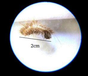 If the measured length of the magnified beetle larva image shown below was 2 centimetres (20 mm), the ocular magnification of the microscope is 5 X and you are using an objective lens magnification of 10 X, what is the actual length of the larva in millimetres?