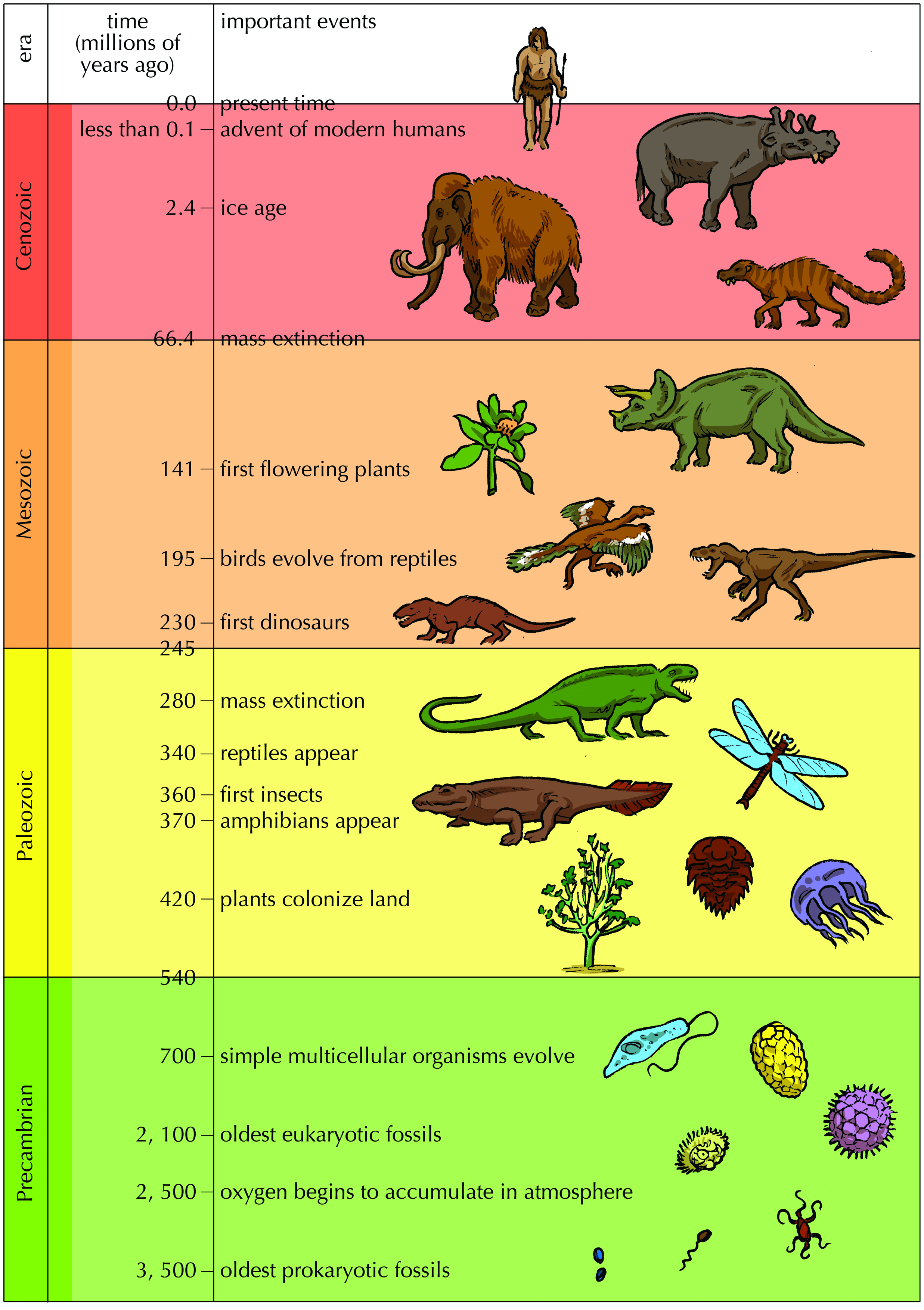 In this exercise you will learn to combine all the information given on the history of life and depict it on a simple geological timescale of your own.