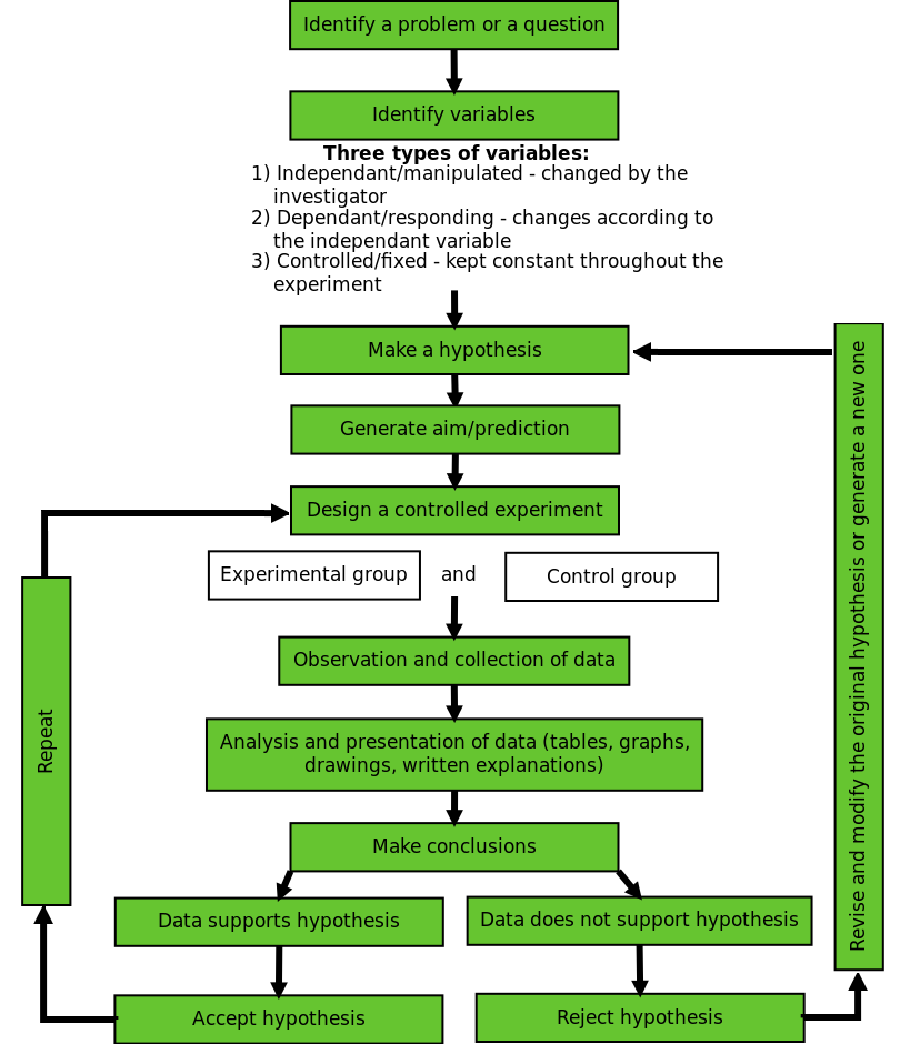 The next step is to test your hypothesis. An experiment is a tool that you design to find out if your ideas about your question are right or wrong. You must design an experiment that accurately tests your hypothesis. The experiment is the most important part of the scientific method. We will discuss independent and dependent variables as well as controls later. These are all important concepts to know when designing an experiment. In science, another researcher may want to repeat your method, to verify your results, improve it or do a variation of your experiment. Listing the apparatus helps others to verify that you used a suitable method, and enables them to replicate the experiment.