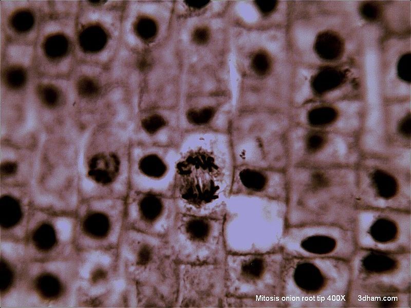 Figure 4.3: Meristematic cells in the growing root-tip of the onion, from a longitudinal section. |