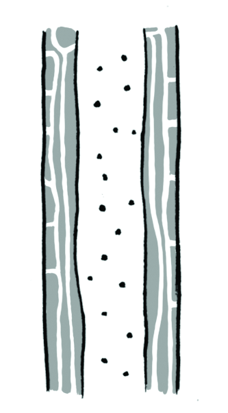 | Pits in cell walls | Allow lateral water transport to neighbouring cells |