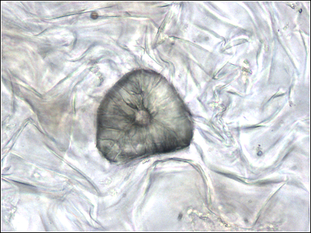 - Cover with a cover slip and observe under low power. You should focus on the groups of dark "stones" that appear amongst the rounded parenchyma cells of the pear. Try to find one or two stone cells or sclereids that are separate from the rest.
