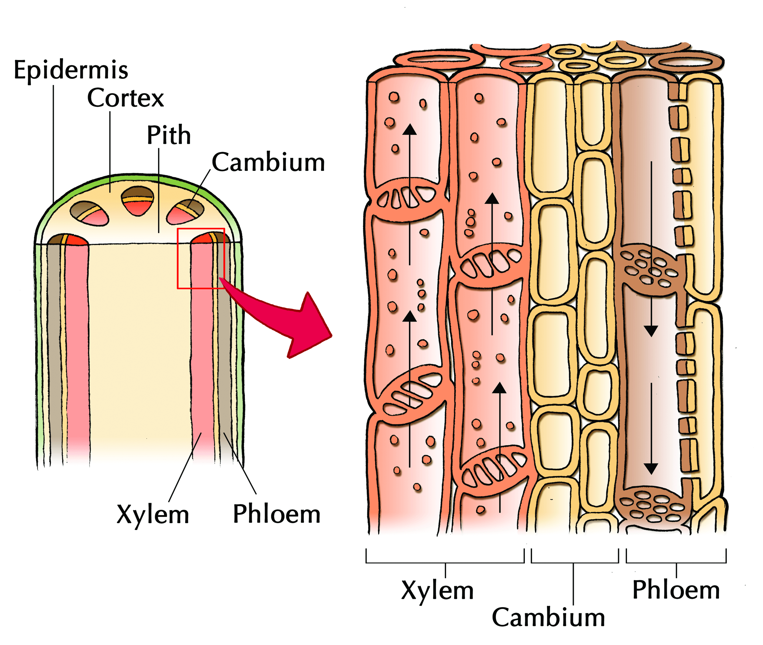 Figure 4.20: Xylem and phloem are the main transport vessels in plants. The figure above shows how vascular tissues are arranged in a vascular bundle.