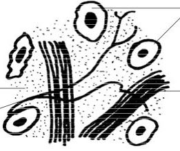 | Areolar (loose connective) | jelly matrix; has network of elastic fibres which attach together | holds the organs in place, cushions and protects organs (acts as a packing material) | surrounds blood vessels and nerves found in the mesentry which surrounds the intestine |