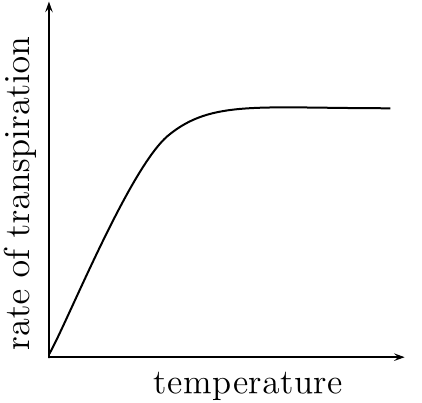 Temperature affects the transpiration rate in two ways. Firstly, at warmer temperatures water molecules move faster, and the rate of evaporation from stomata is therefore much faster. Secondly, the water-holding capacity of warm air is greater than that of cold air. Assuming that cold air and warm air contain the same amount of water, the cold air may be saturated, and therefore have a shallow water concentration gradient, while the warm air may will be able to hold more water vapour, and will therefore have a steeper water concentration gradient.
