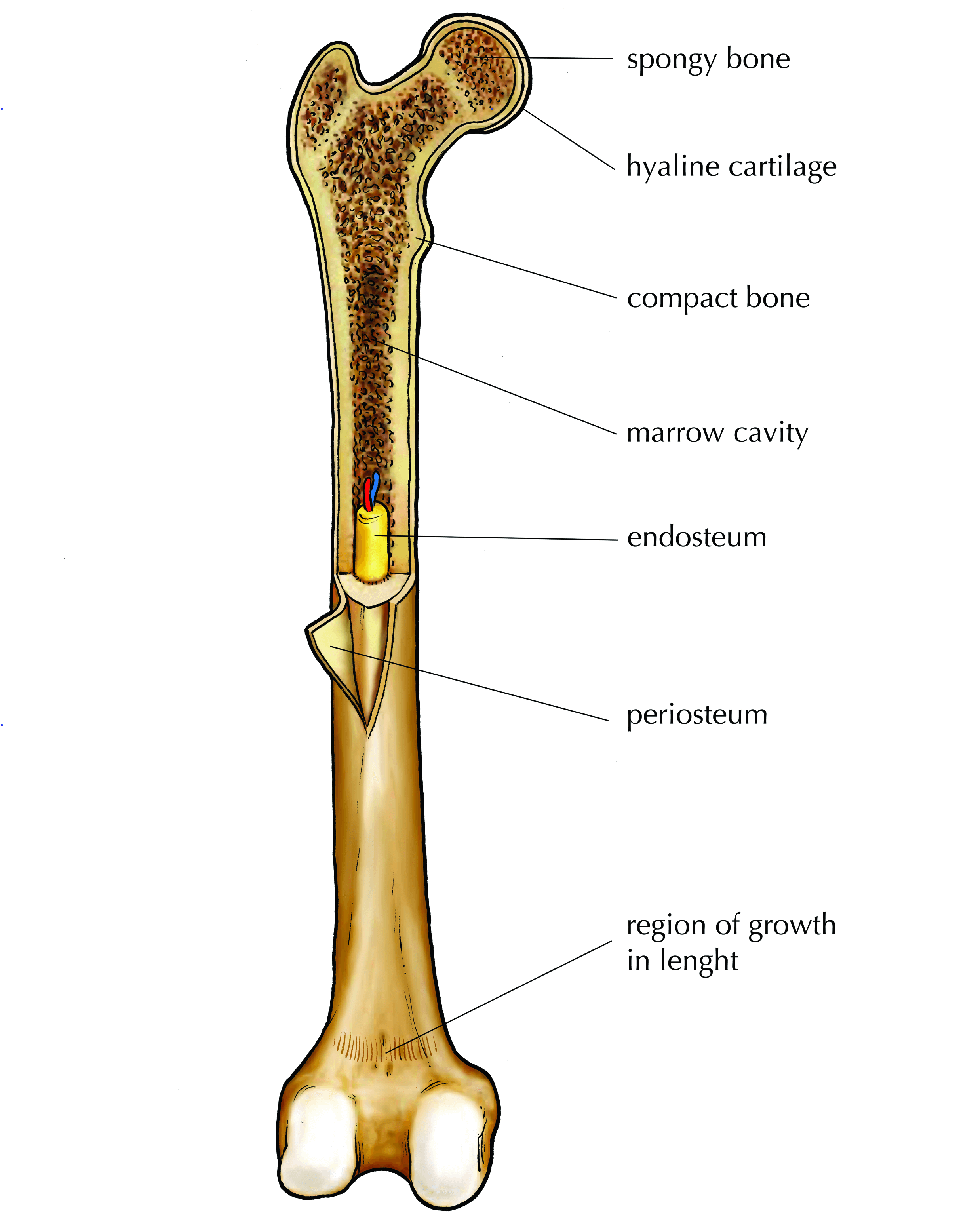 Draw and label a longitudinal section of a long bone