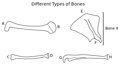 Parts of some of these bones meet at certain joints. By using the letters (A–H) only, state which parts of the bones form the shoulder joint.