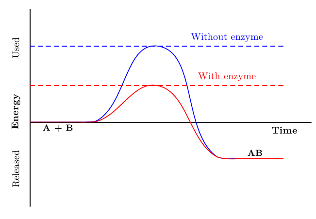In humans, enzymes function best at \(\text{37}\)\(\text{°C}\) (Figure 1.20). This is the optimum temperature. At very high temperatures proteins denature; this means that the hydrogen, hydrophobic and electrostatic interactions that result in the protein's three-dimensional shape break down, unravelling the protein into its primary structure, a long chain of amino acids. When a protein is denatured, the shape of its active site, as well as the rest of the protein shape is altered. The substrate can no longer fit in the active site of the enzyme and chemical reactions cannot take place. Low temperatures can slow down or even inactivate enzymes, as low temperature means less available kinetic energy, so that even the lower energy of activation that the enzyme allows is not available. The first graph shows the effect of temperature on enzyme activity.
