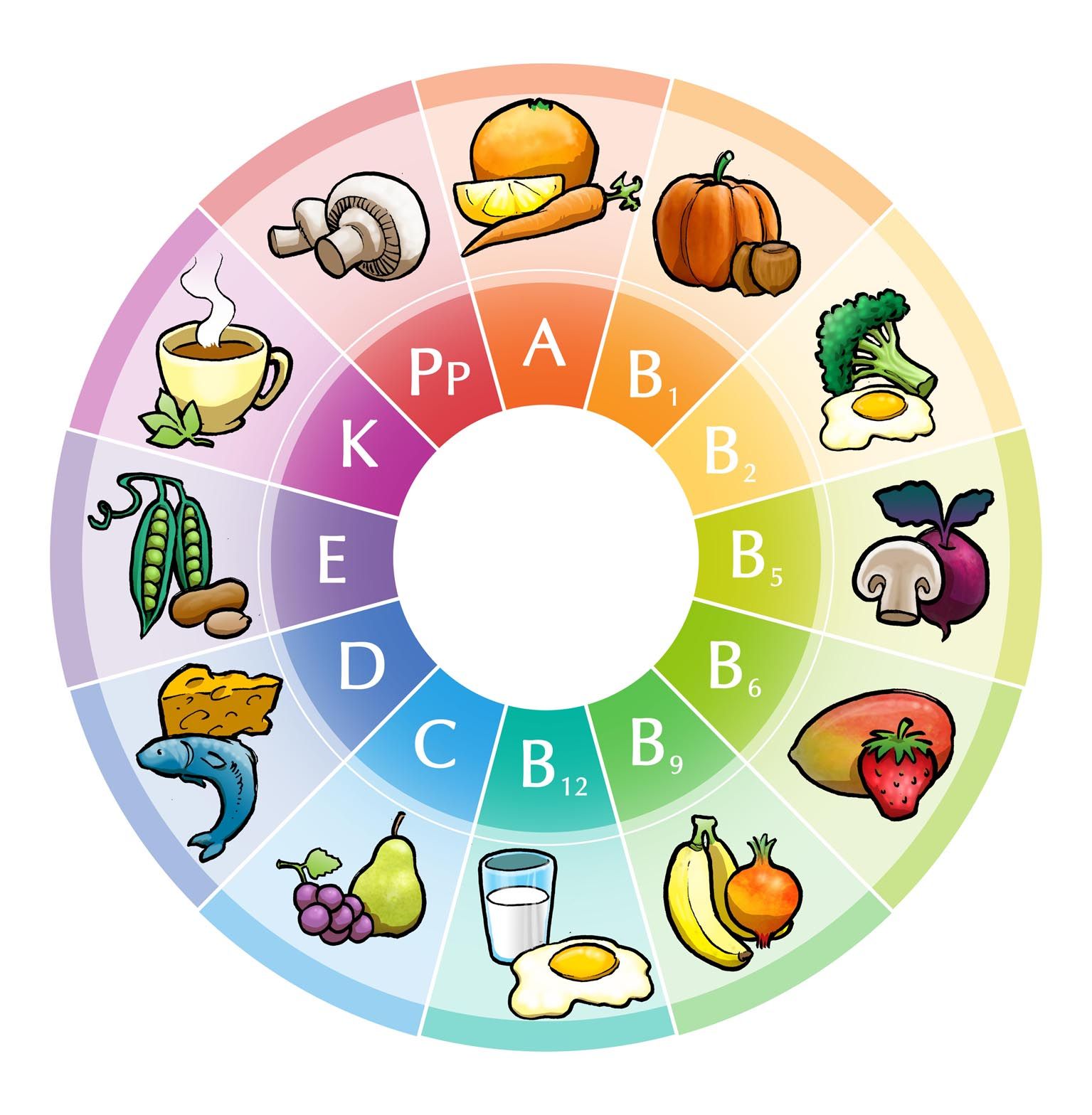 | Vitamin B (A group of vitamins with related functions) | Carbohydrate, protein, lipid, nucleic acid and alcohol metabolism; neurotransmitter synthesis and nerve function; red blood cell production | grains, potatoes, bananas | B1- beriberi, B3- pellagra, B6, B9, B12- anaemia |