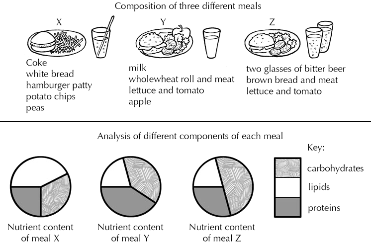 Study the information in the following diagrams and the table below, for three different meals X, Y and Z.