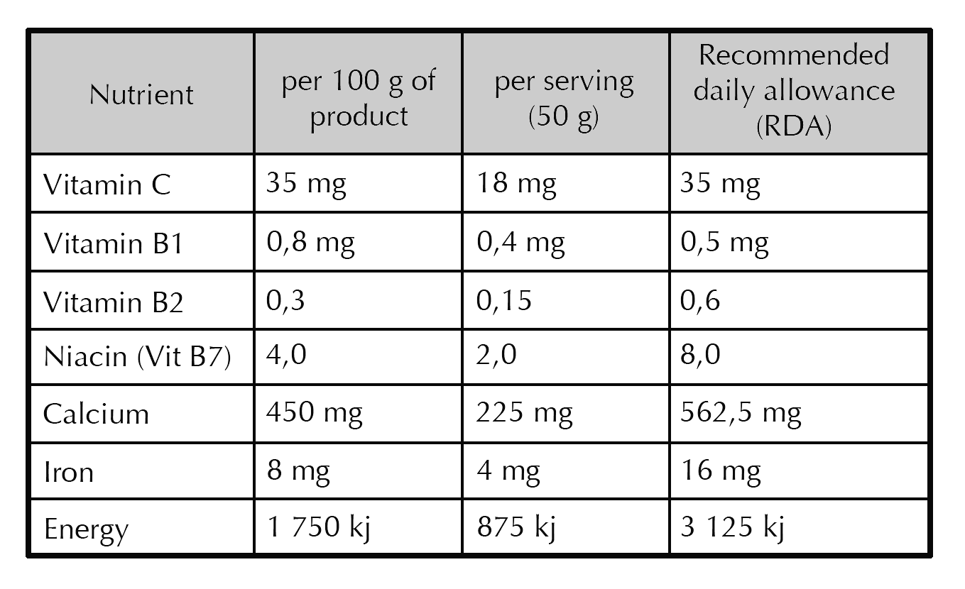 The following information (given in the table below) appeared on a box of breakfast cereal. Use this information in the table to assist you in answering the questions that follow.