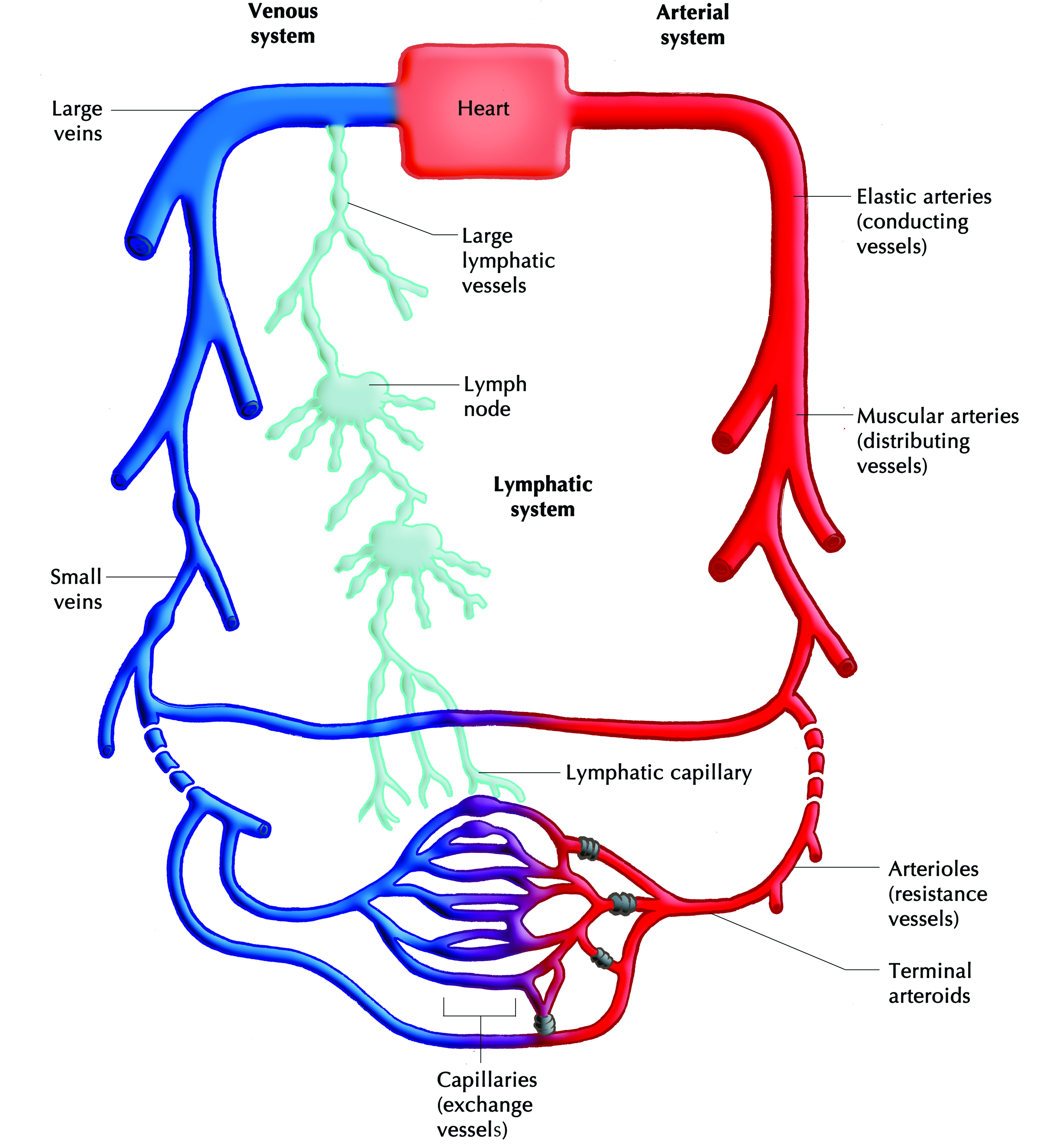 Figure 7.15: Interaction between lymphatic and cardiovascular circulatory systems.