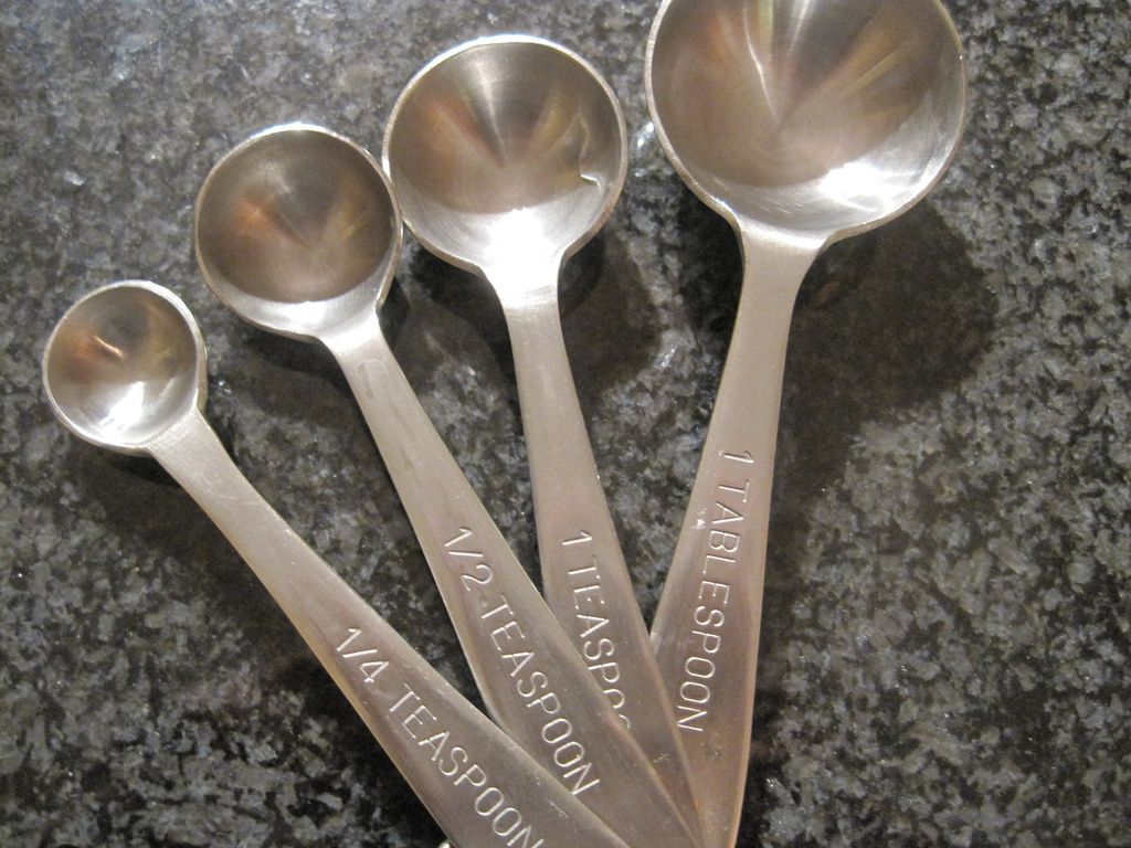 In recipes used for cooking and baking we often find the measurements for the ingredients required in cups, teaspoons and tablespoons. Measuring cups and spoons come in standard sizes, and are common in the kitchen and in recipes because they are quick and simple to use. It's very easy to measure out a quantity of baking powder in a measuring spoon, for example - much quicker than it would be weighing it on a scale.