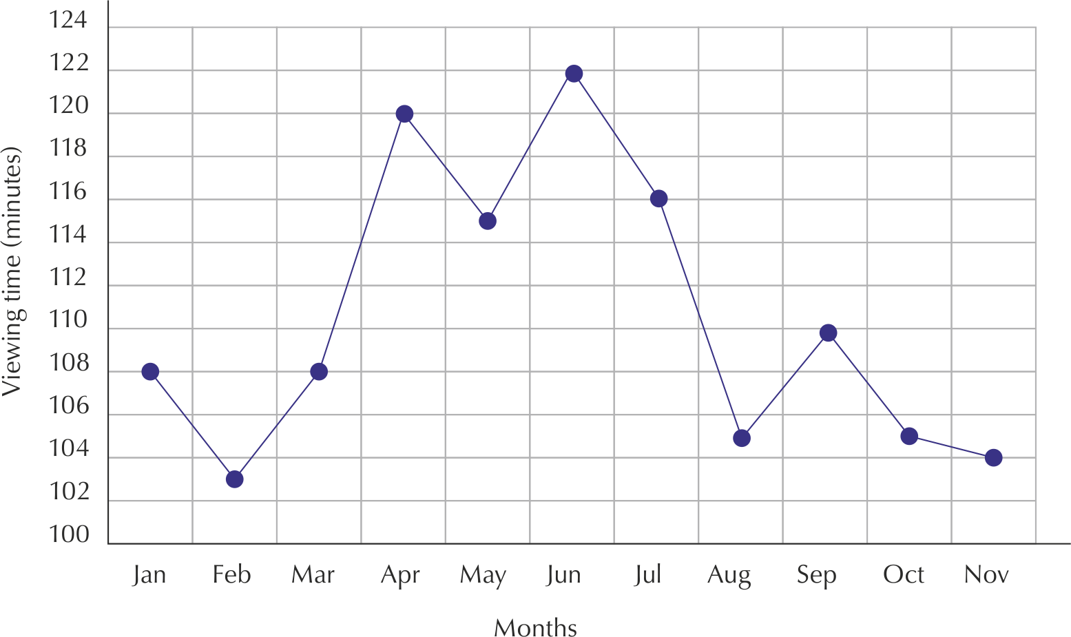 This table below shows the average number of minutes that Jabu spent watching TV from January to November last year.