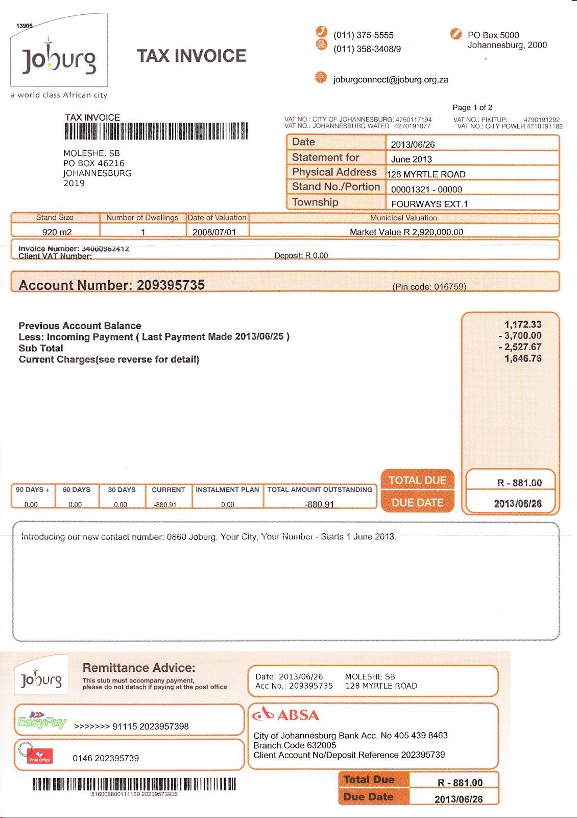 Simon gets the following municipal bill for his property rates and refuse removal.