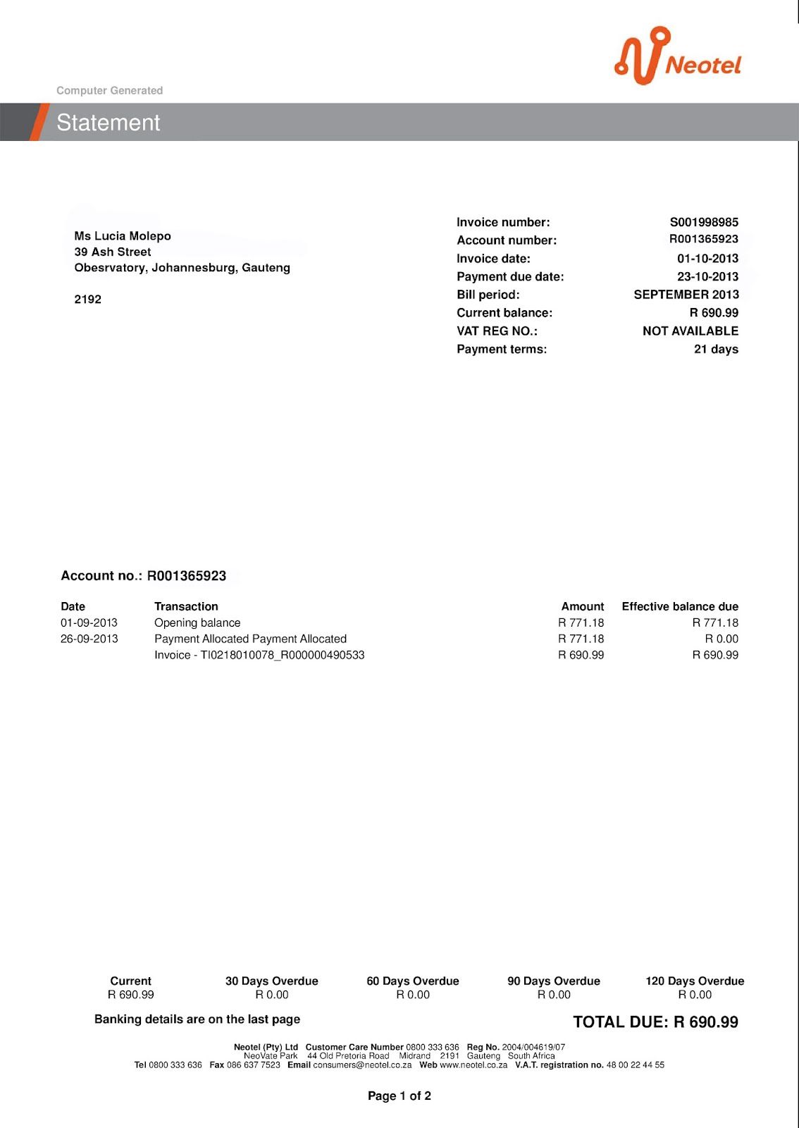 She paid \(\text{R}\,\text{771,18}\) on 26 September 2013
