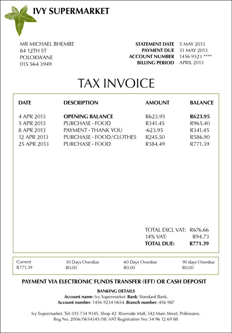 Michael receives the following invoice from Ivy Supermarket, where he has a store account:
