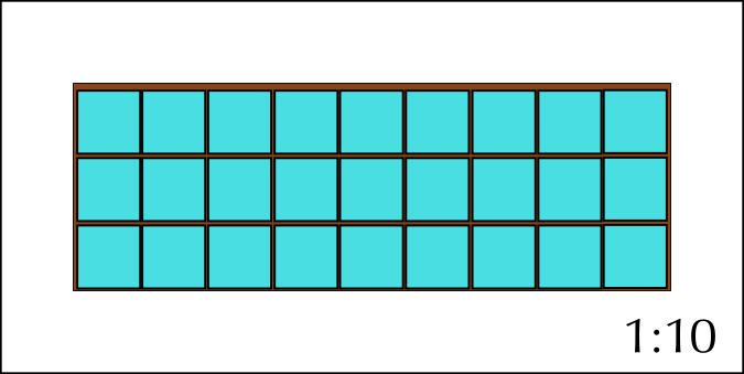 \(\text{45}\) \(\text{cm}\) \(\div\) \(\text{5}\) \(\text{cm}\) = \(\text{9}\) boxes.