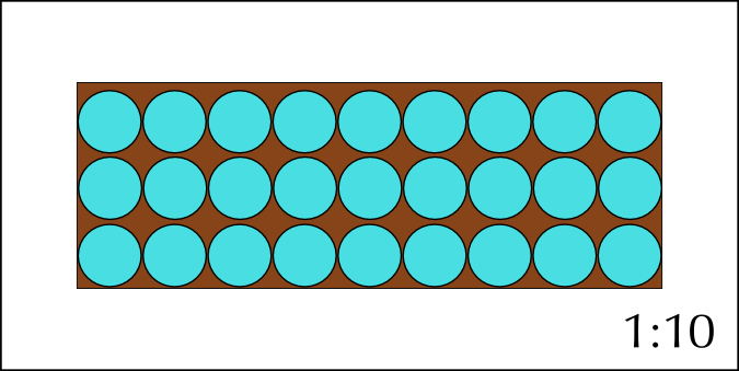 \(\text{45}\) \(\text{cm}\) \(\div\) \(\text{5}\) \(\text{cm}\) diameter = \(\text{9}\) cans.