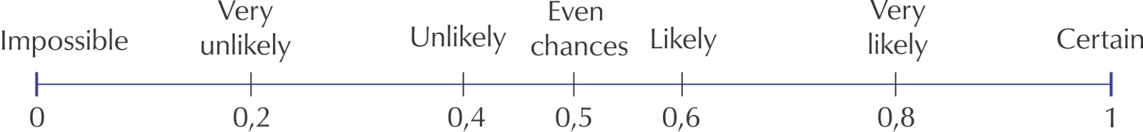On a the probability scale below choose the which words best describe the probability of each of the following events: