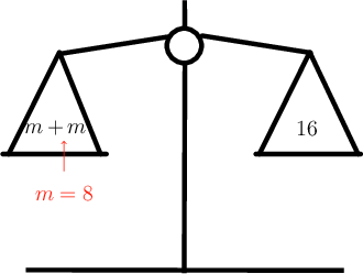 \[(8) + (8) = 16\]From the above calculation, we can see that that \(m = 8\) is a solution to the equation.