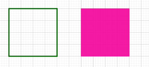 In the diagram below, the green line shows the perimeter of the square and the pink surface shows the area of the square.