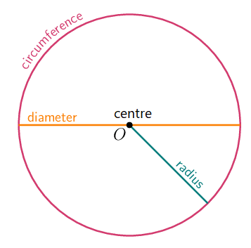 - A line segment from the centre of the circle to a point on the circumference is called a radius.