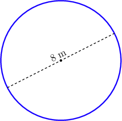 The circle below has a diameter of \(\text{8} \text{ m}\).