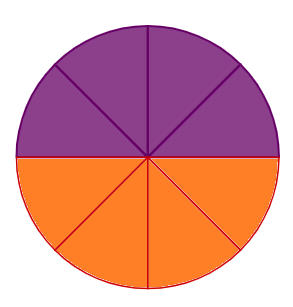 - Cut along the fold lines so that you have four orange sectors and four purple sectors.