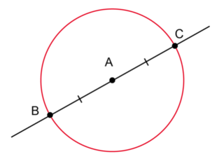In the diagram below, \(A\) is the centre of the circle and \(BC\) is the diameter of the circle. This means that \(AB\) is a radius of the circle and \(AC\) is also a radius of the circle.