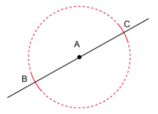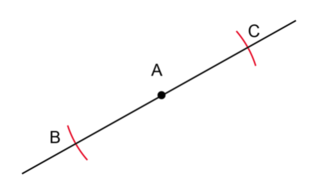 When we do constructions we seldom draw a complete circle. The solid lines drawn at \(B\) and \(C\) are called arcs.
