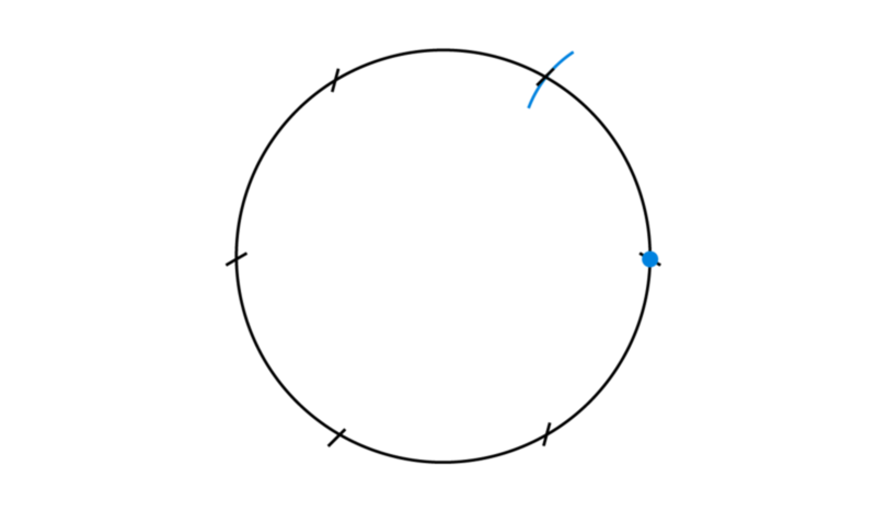 - Put the compass on the point and start to make small arcs on the circumference of the circle.