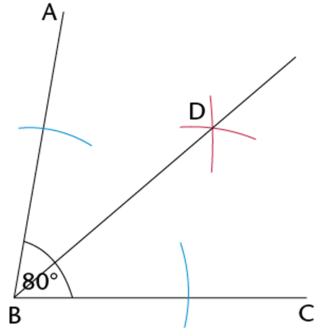 Use a compass to bisect angle \(A\hat{B}C = 80^{\circ}\).