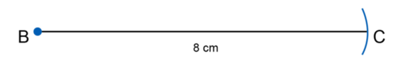 Keep the compass width the same and place the compass on point \(B\). Then draw a small arc to mark off a length of \(8\text{ cm}\). Label the point \(C\).
