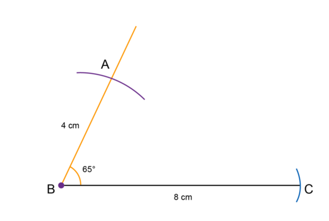 Construct \(\triangle ABC\) with \(AB = 4 \text{ cm}\), \(A\hat{B}C = 65^{\circ}\) and \(BC = 8 \text{ cm}\). You may use a protractor for this construction.