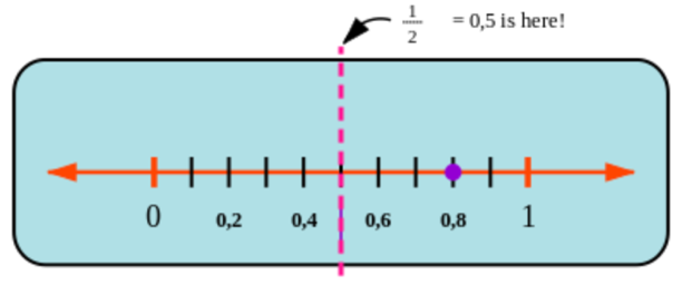 \(\text{0,5}\) (a half) on the number line. You can see that \(\text{0,8}\) is more (bigger) than \(\text{0,5}\). We can write this