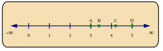 Now if you were given decimal numbers: \(\text{3,4}; \text{5,0}; \text{4,2}; \text{3,0}\), you could check their position on the number