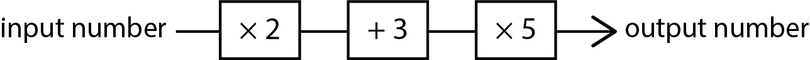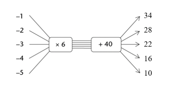 In this case, we have two operators that follow each other: \(\times 6\) followed by \(+ 40\), so we need to multiply the input numbers by \(6\) and then add \(40\) to get the output numbers.