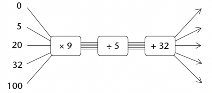 example, the rule for converting temperature given in degrees Celsius to degrees Fahrenheit is given as: