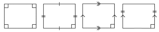 A rectangle is quadrilateral with opposites equal and parallel and interior angles equal to \(90^{\circ}\).