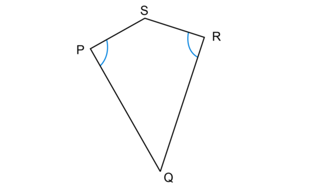 The diagram shows parallelogram \(PQRS\) with opposite angles equal: \(\hat{P} = \hat{R}\) and \(\hat{Q} = \hat{S}\).