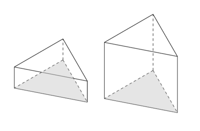 A triangular prism has two identical triangular bases and three rectangular sides joined at right angles to the bases.