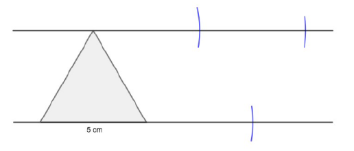 Construct an equilateral triangle and then draw parallel lines. Use a compass to mark off distances of \(5 \text{ cm}\).