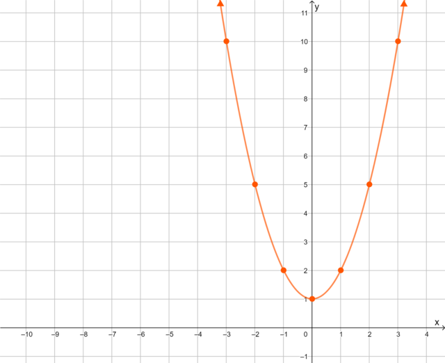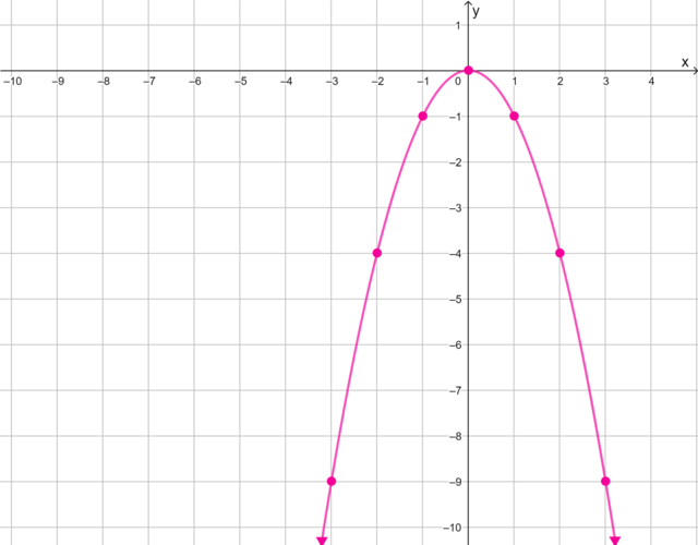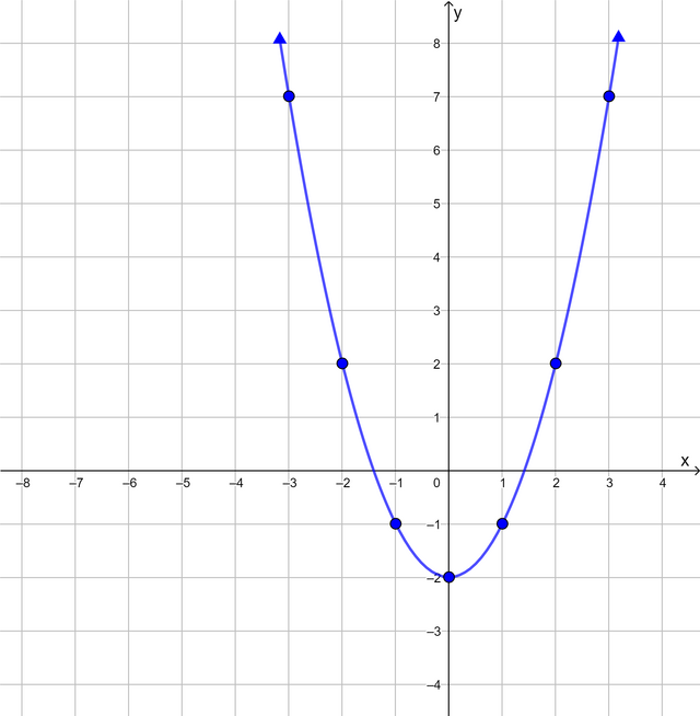 From the table of values, we obtain seven ordered pairs. We plot each point on the Cartesian plane and draw