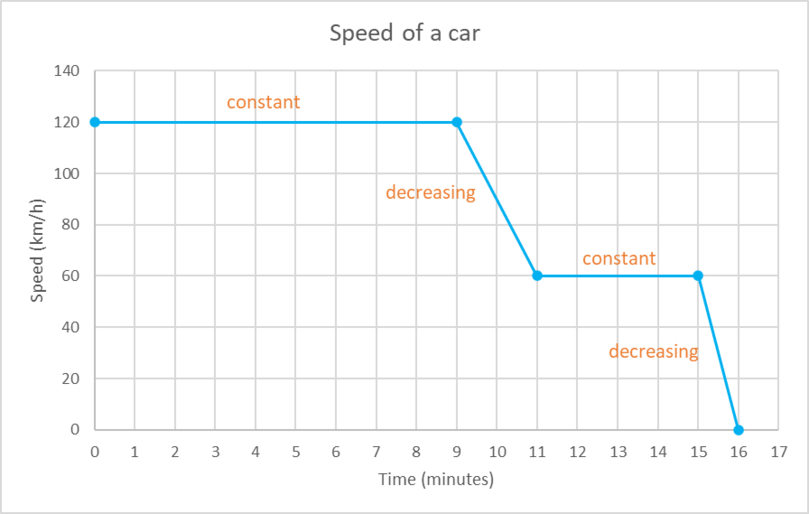 minutes, it reduces its speed at a steady rate until it reaches a speed of \(60 \text{