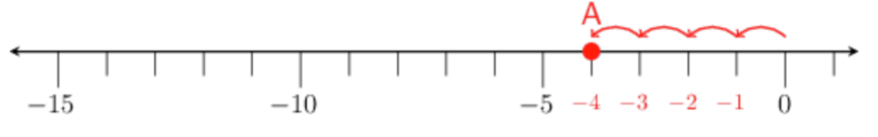 Since point A is to the left of zero, we must count backwards, one unit at a time, to get to point A.