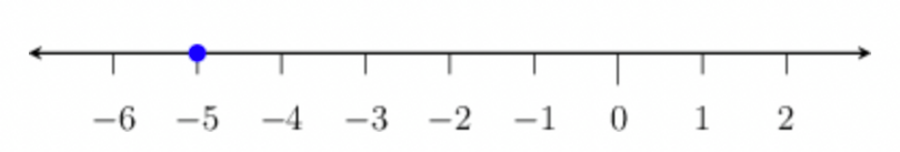 between \(0\) and \(−5\). This means that each unit mark represents a space of \(1\) (or \(1\) unit). If