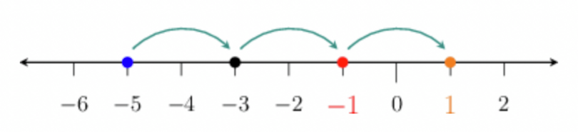 We must start at \(−5\) and count forwards (to the right) in \(2\)s.