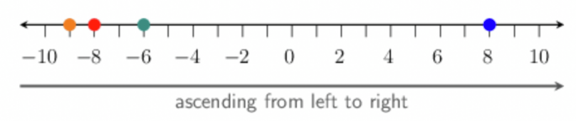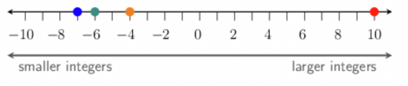 For example, the numbers \(−7\); \(−6\); \(−4\) and \(10\) are in order from smallest to