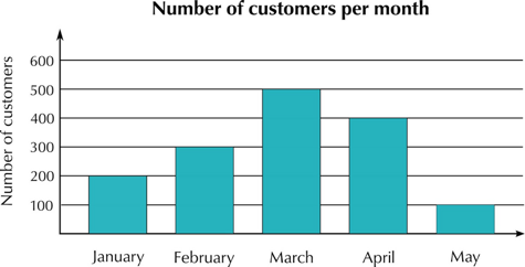 The table gives the number of customers per month for the first five months of the year. We will use these five months as the categories on the horizontal axis.